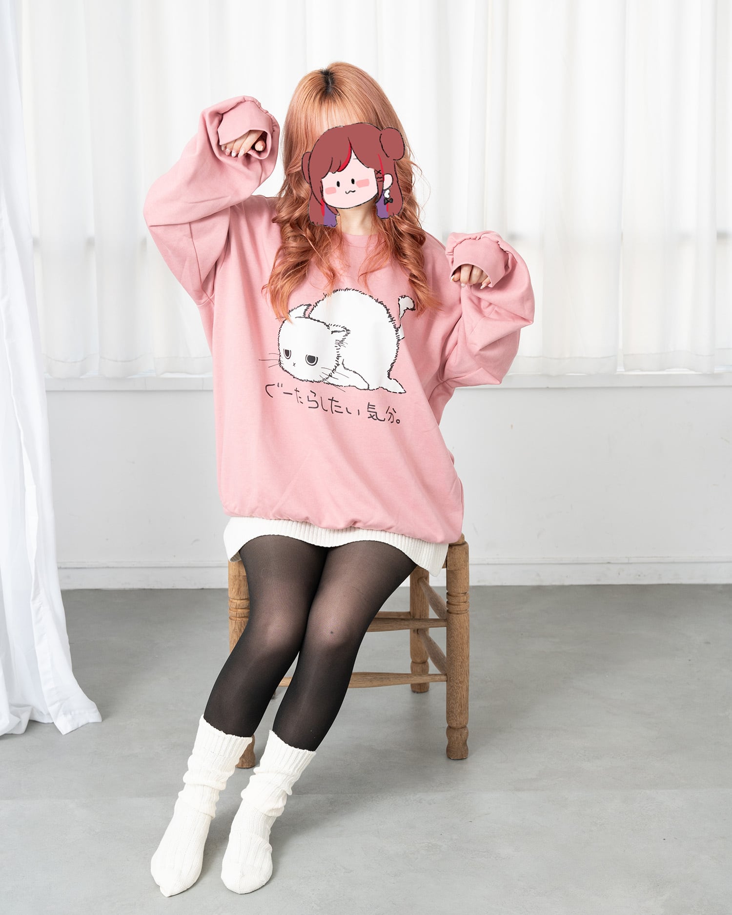 ぐーたらによるボスの可愛いイラストプリントが目を引くビッグトレーナーは、ゆったりとしたシルエットで快適な着心地が魅力の一着です。