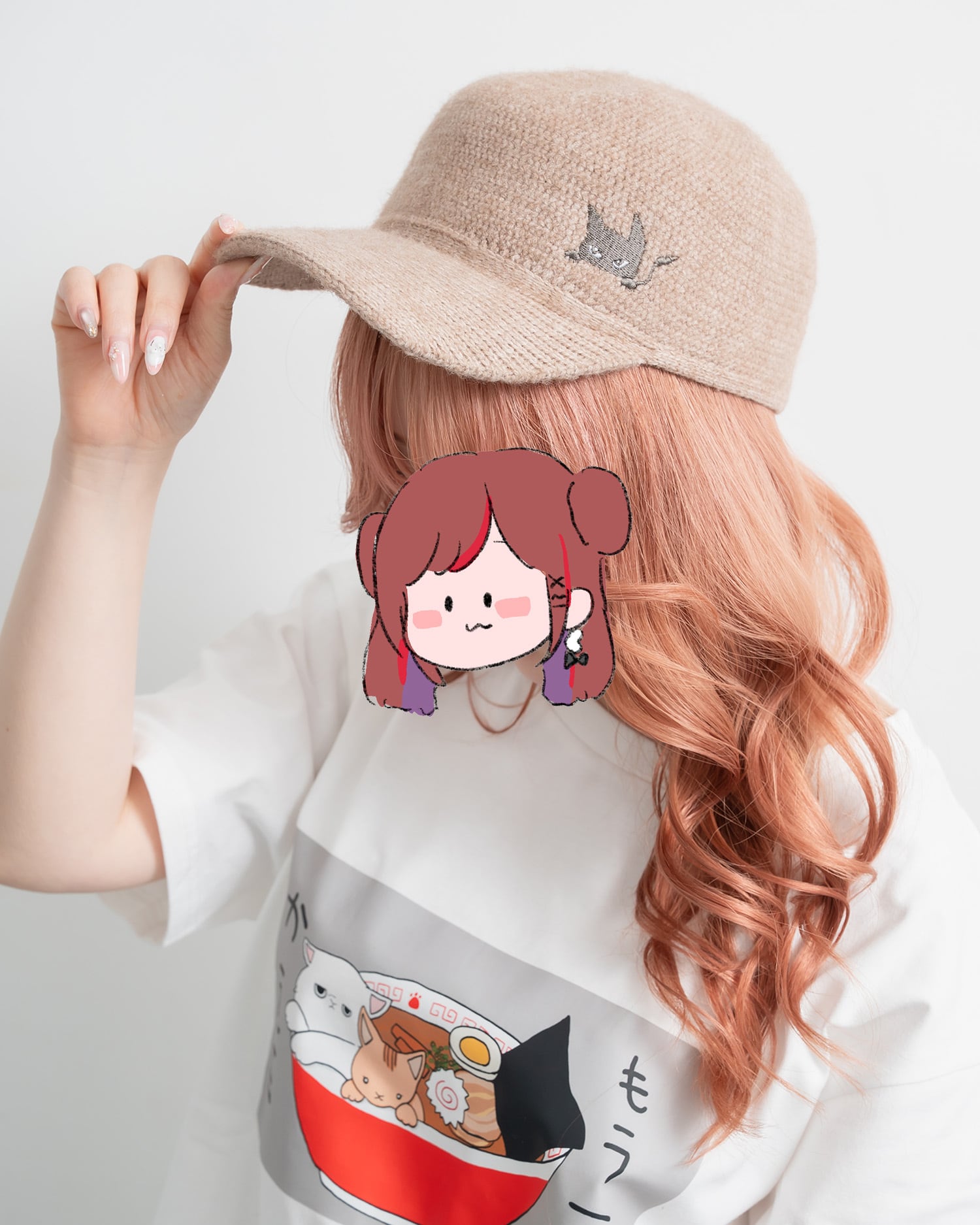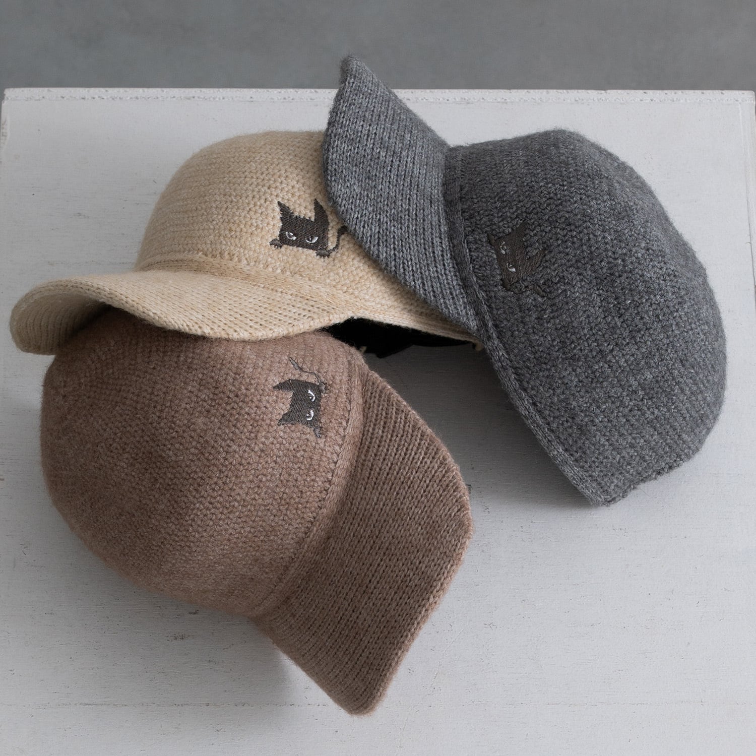 ヒメがひょっこり覗いてる可愛い刺繍のニットキャップ